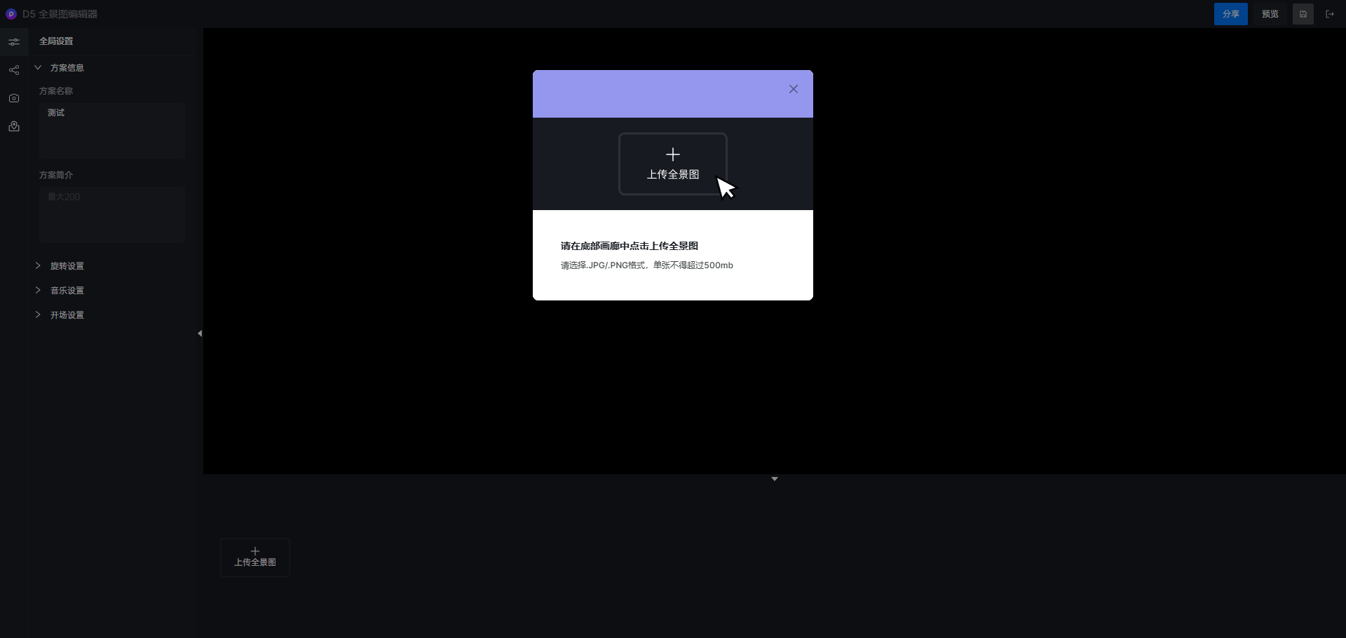 (2)点击后会创建一个空的全景图序列,用户需要手动在浏览器中上传全景图(在D5或者其它渲染器中输出的全景图文件)