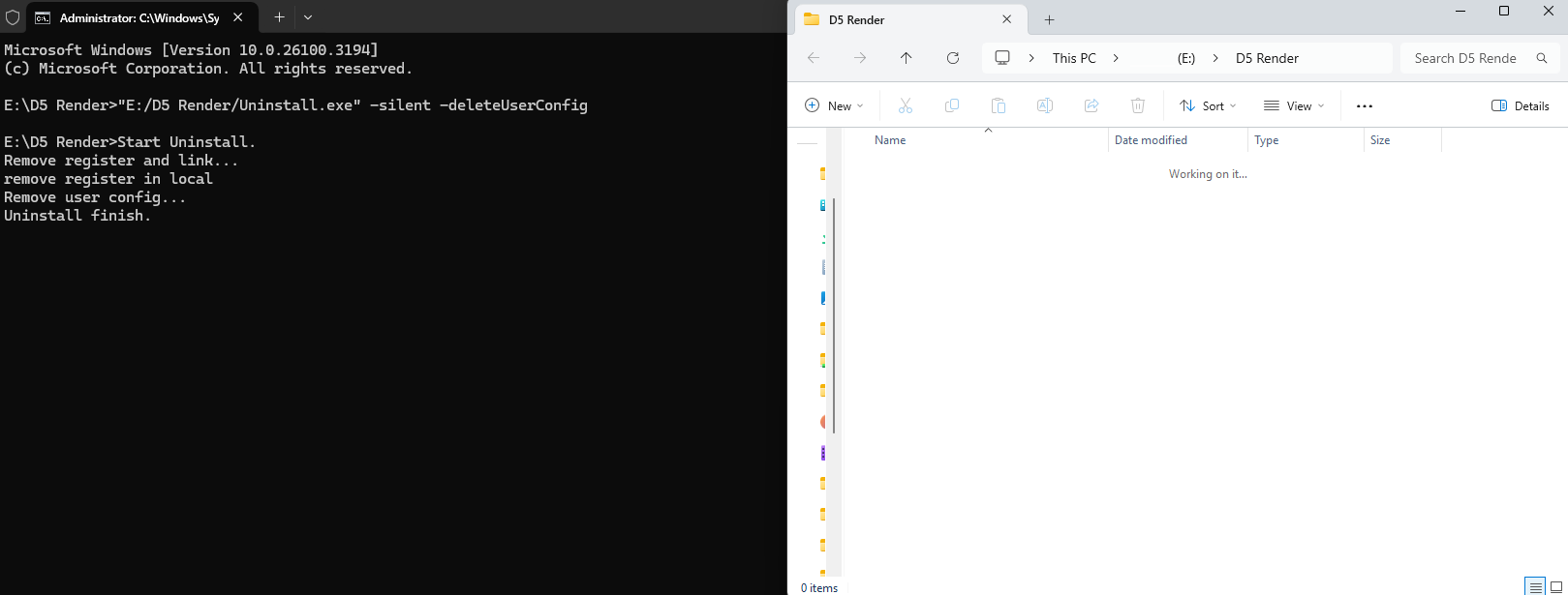 "E:/D5 Render/Uninstall.exe" -silent -deleteUserConfig