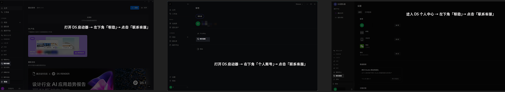 (support@d5render.com)。提交后请留意邮箱通知,以便及时获取处理进展与回复。D5 人工客服服务时间为工作日 9:30–12:00、13:30–18:00。感谢您的理解与耐心等待。