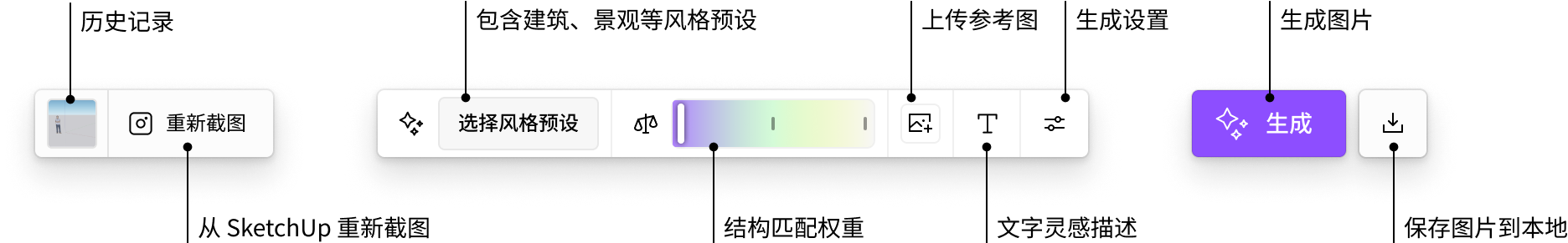 i. 从 SketchUp 中截图后,加上风格预设或灵感描述等信息,从头开始创建一个全新的 AI 图像。