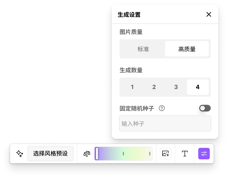 ii. 重新生成的流程中,输入图像不会改变,但生成的参数(风格预设、灵感描述或随机种子等)可以进行调整
