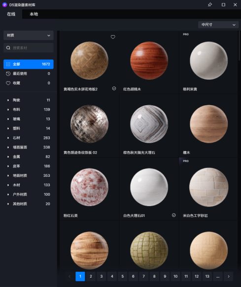 预设材质即为素材库中为用户提供的大量材质。