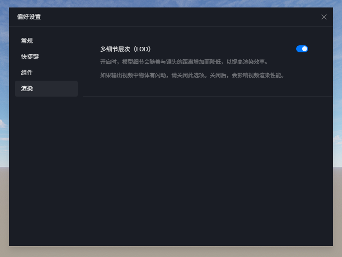 可以在左上角菜单栏-偏好设置-渲染,关闭多层次细节(LOD)开关,模型在渲染时将不会自动优化,一直保持最高的细节,不过也会导致渲染时间变长。