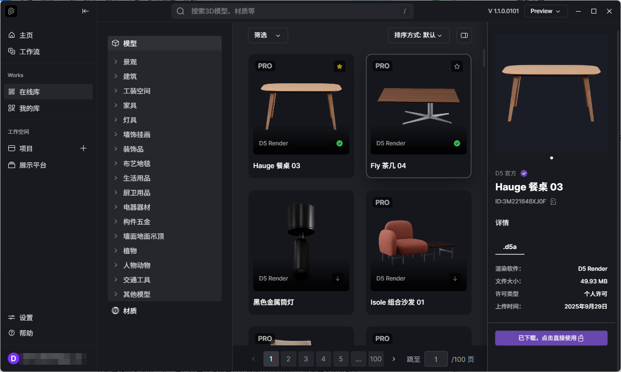 D5 Works是面向建筑、景观与室内设计专业人士的 3D 素材平台,旨在帮助创作者高效获取与管理高质量资源。