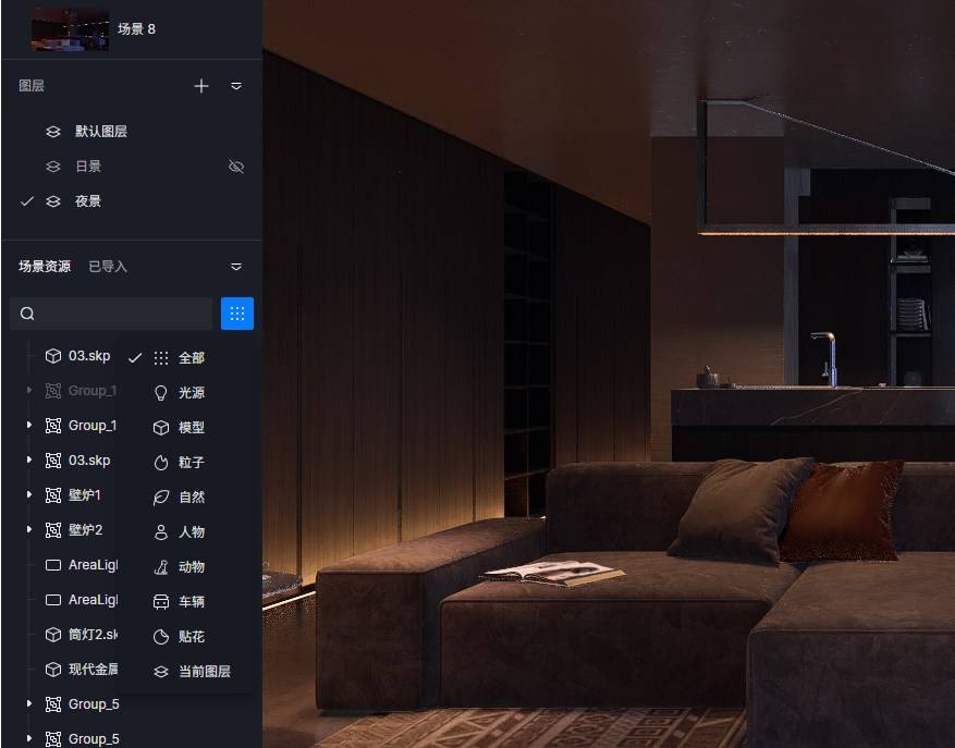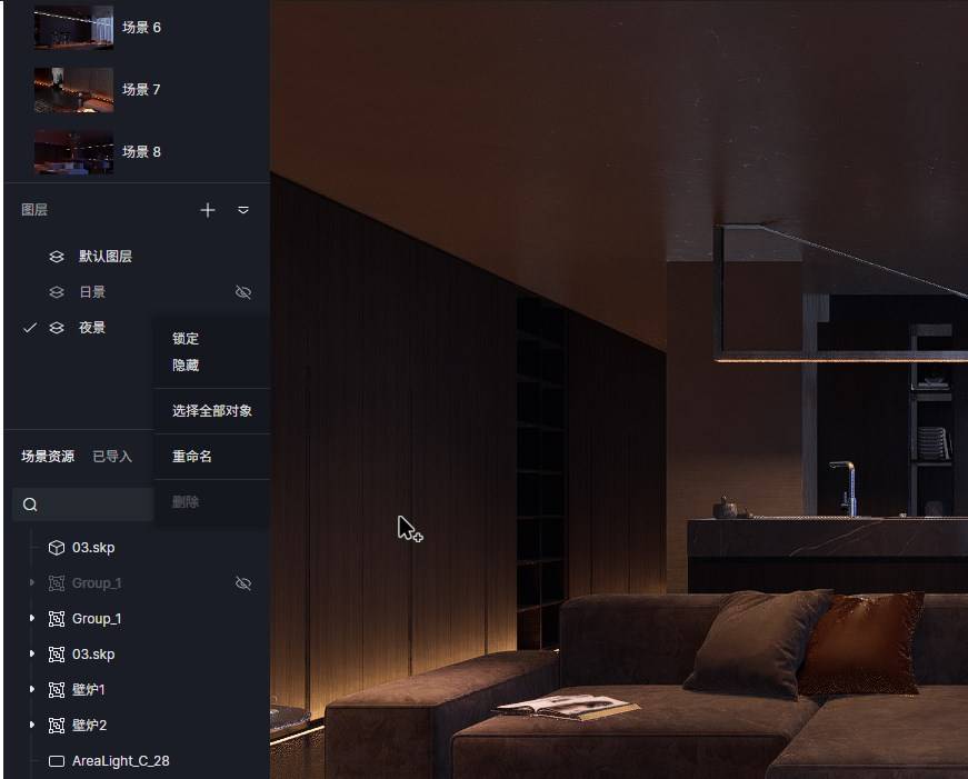 图层管理功能方便用户对场景资源进行更快捷的归类管理。