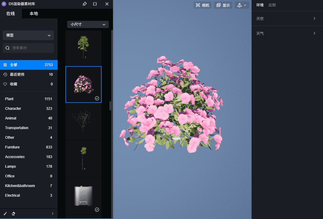 模型替换功能支持的类型:abc 文件格式、d5a 模型组、贴花、粒子等类型。当前除灯光和路径工具外,所有物体类型均支持替换。
