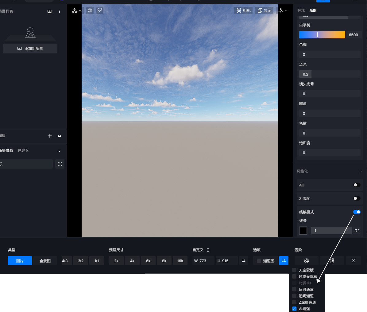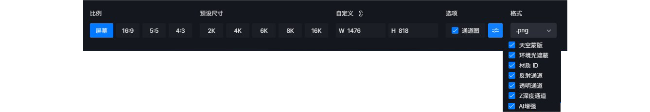 AI增强通道 输出图片时默认勾选;输出序列帧时无此通道。