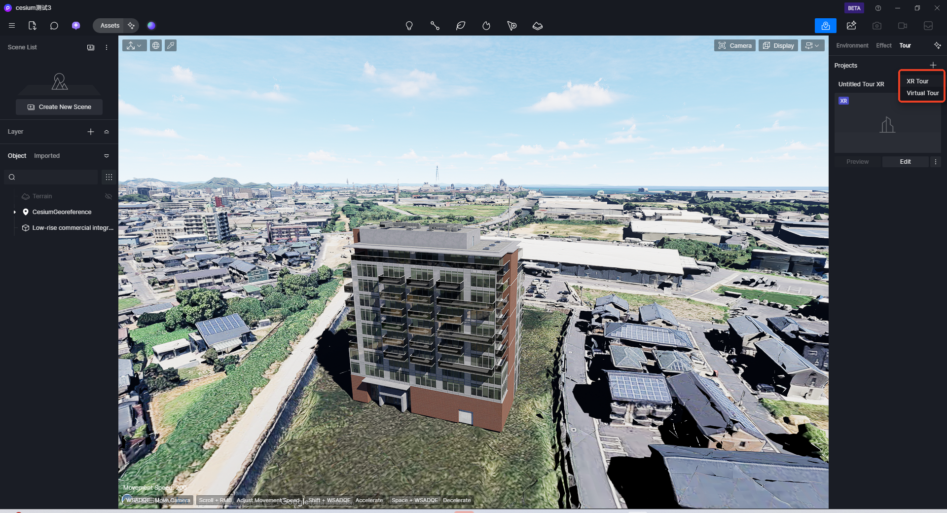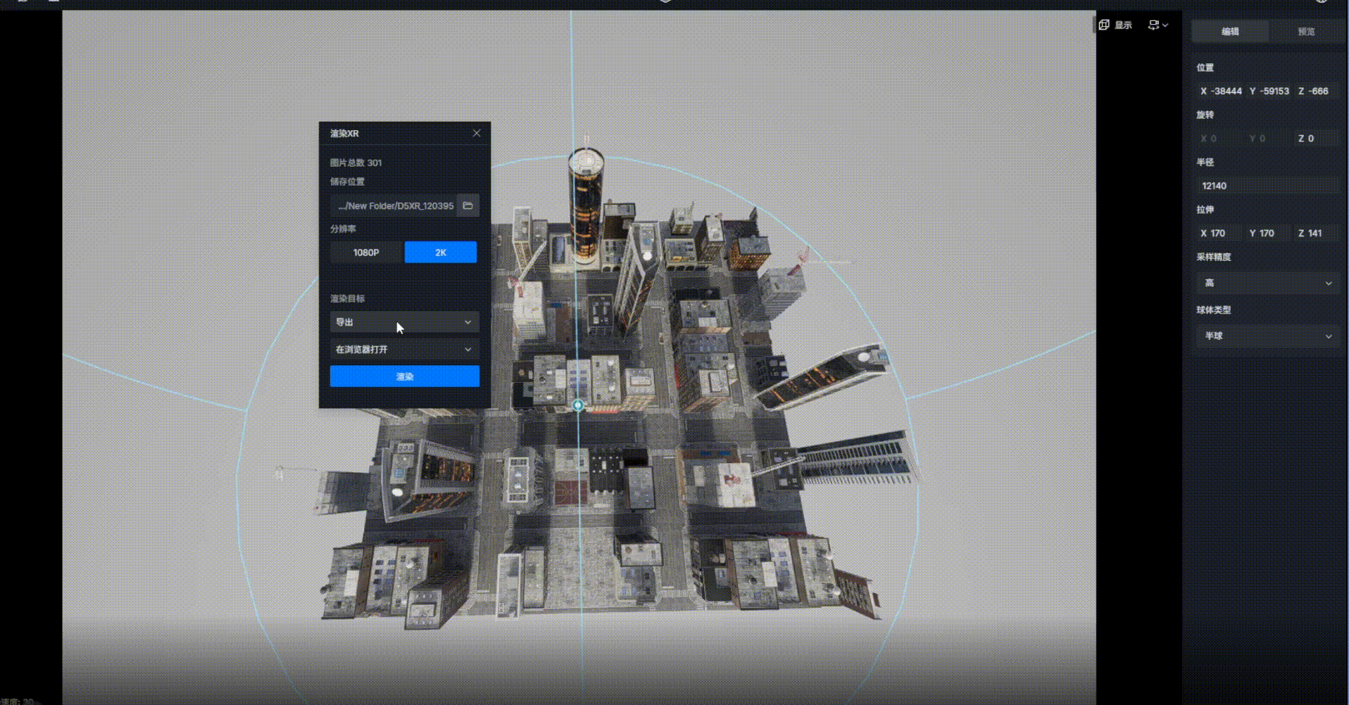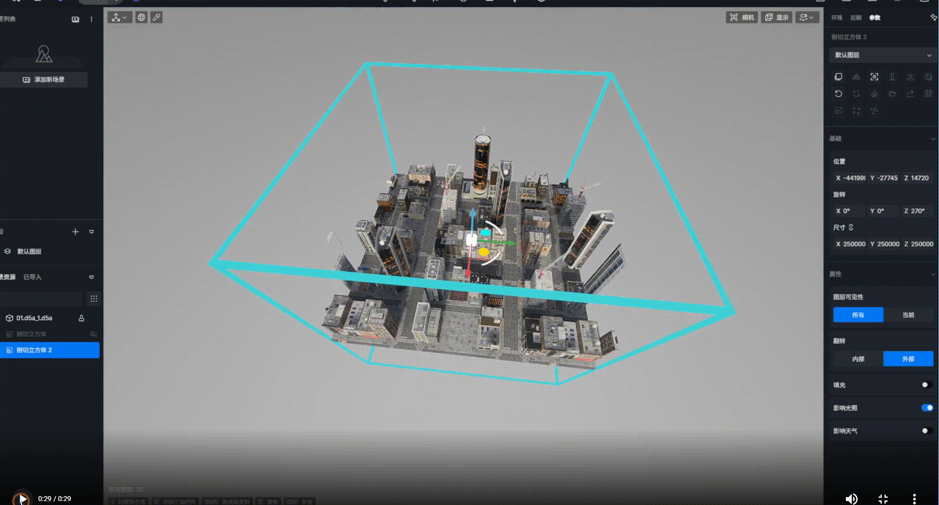 1. 想要制作一个精致的建筑鸟瞰XR漫游,用户可以使用体裁剪工具,将需要进行三维重建的D5场景进行裁剪,让核心的建筑物尽量位于场景的中心。