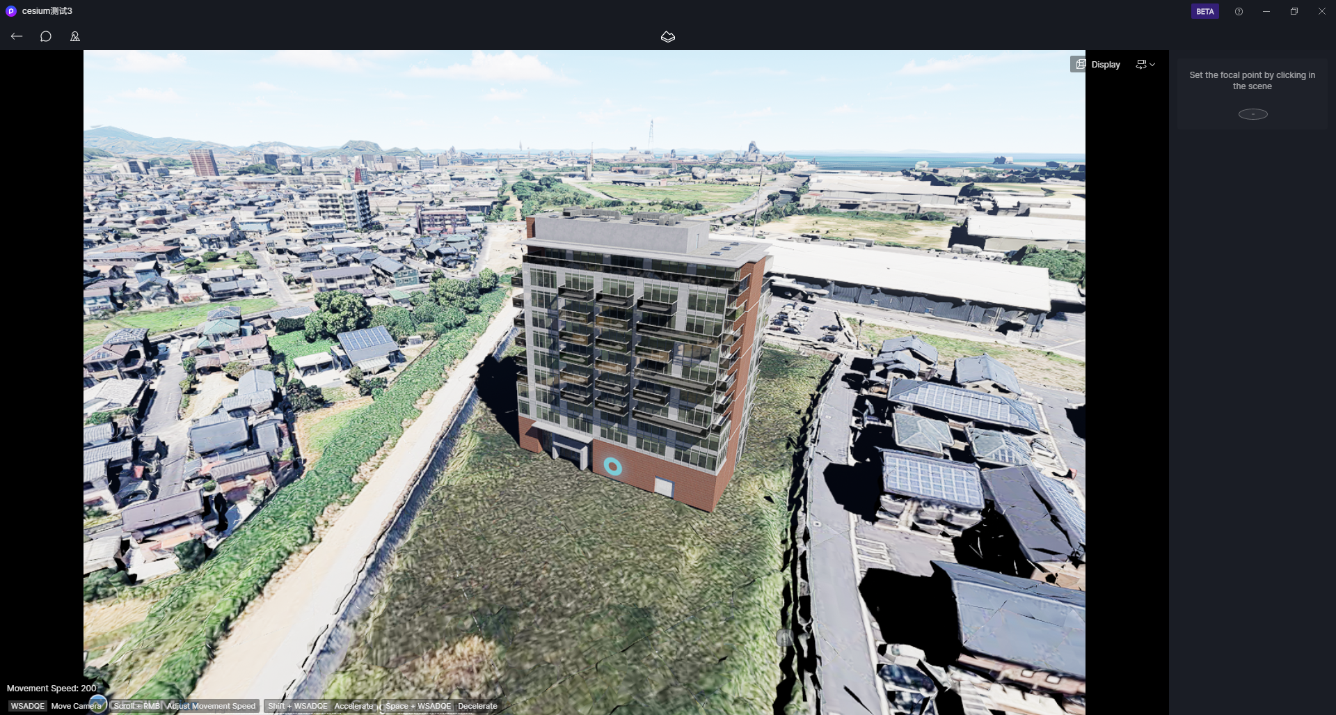 2. 初次进入编辑模式,需要用户鼠标点击场景中的一处位置,初始化相机矩阵模板的初始中心点