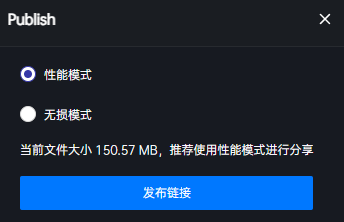 - 性能模式:选择性能模式会压缩为原始文件的1/10大小,更适合在移动端设备查看