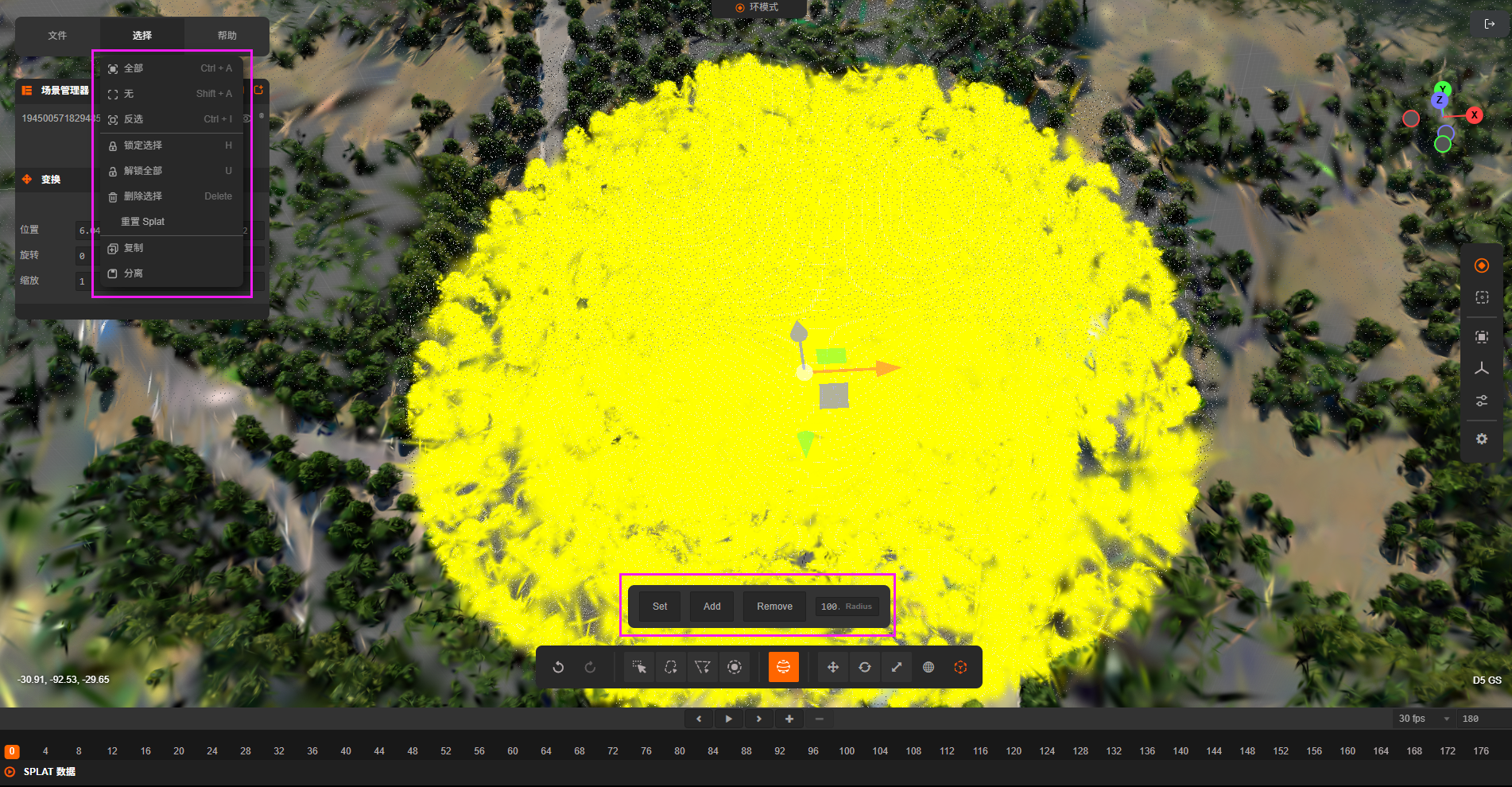 球选择:设置球的半径,即可在场景中选择一个球形区域,添加为选区。