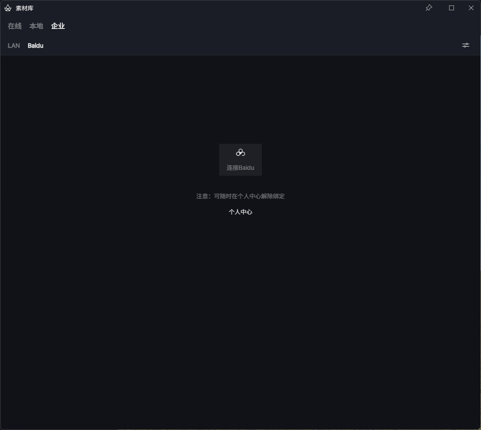 启动素材库,打开【企业素材库】后,在下方的二级菜单中会出现【百度(Baidu)】的选项