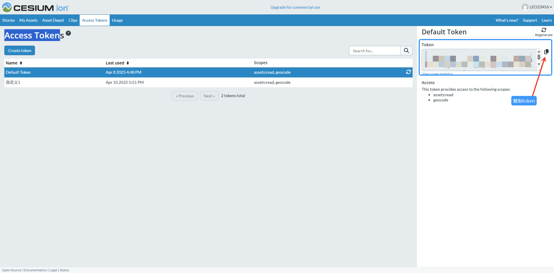 3. 访问后台→Access Tokens,创建一个Access Token,