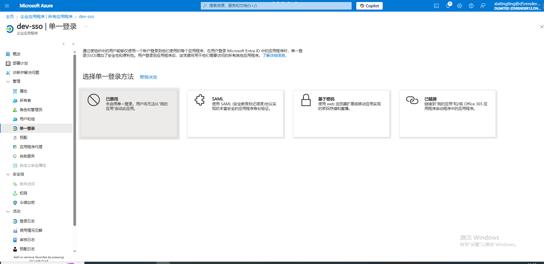 - 在 Azure 后台打开 SSO 控件程序,进入“设置单一登录”