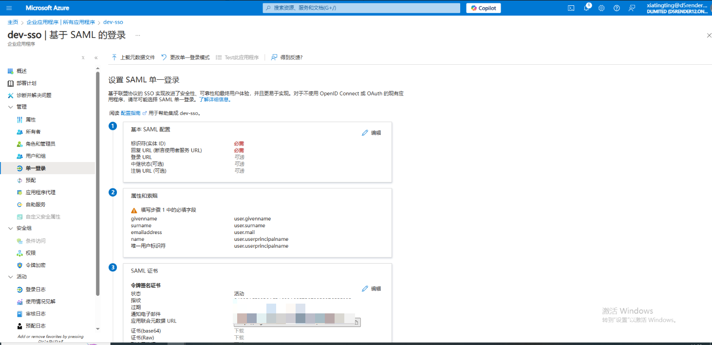 - 在 Azure 后台的 SSO 控件程序中,进入“设置单一登录”界面
