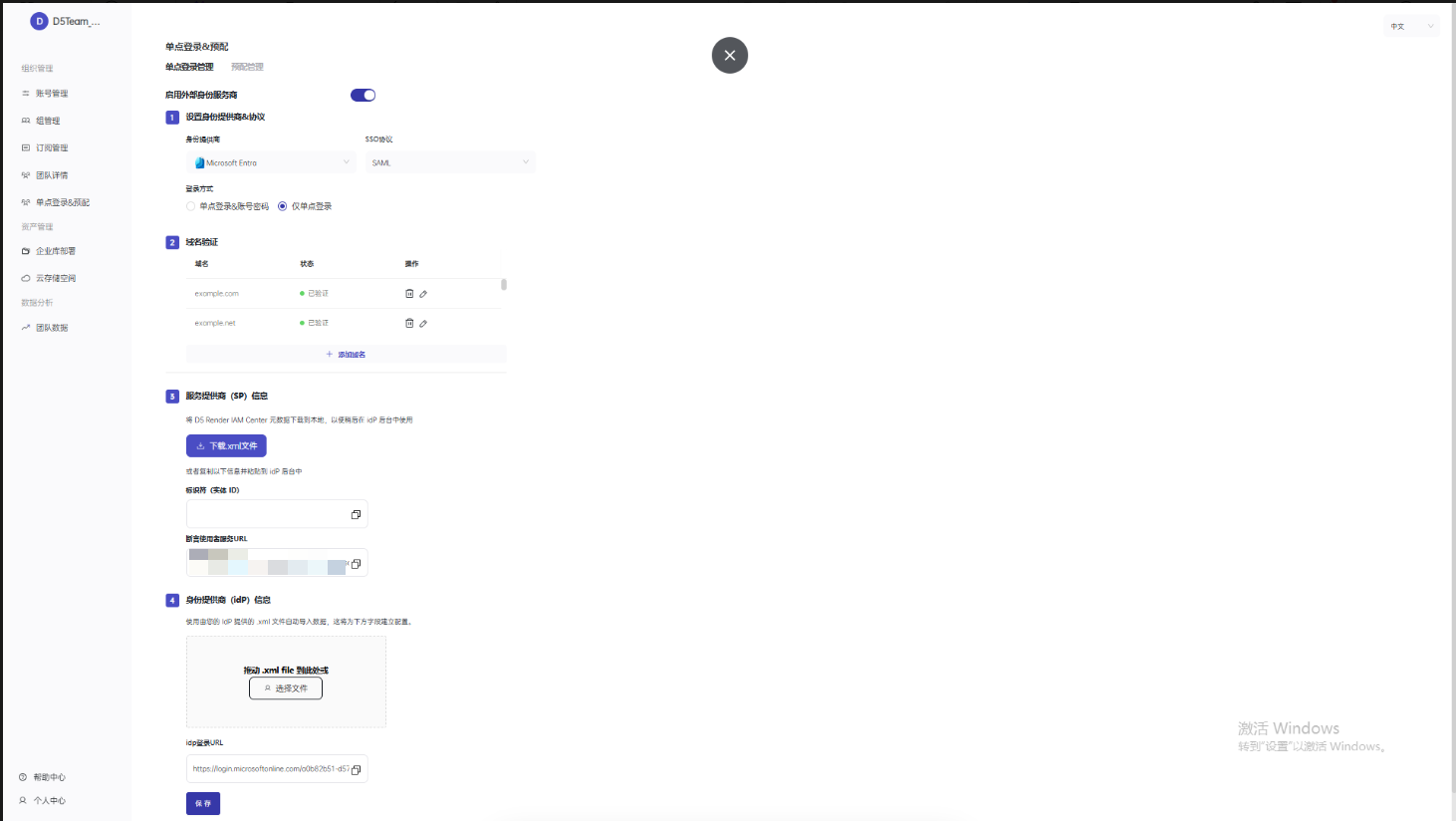 - 仅 团队 Owner 或 超级团队管理员 有权限查看并配置 SSO 页面