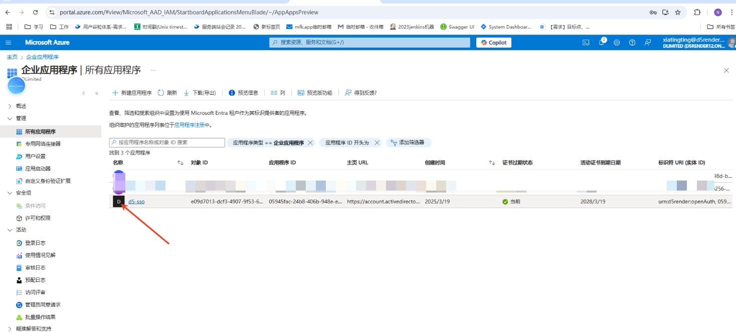 - 已成功登录 Azure 并进入 “企业应用程序” 页面