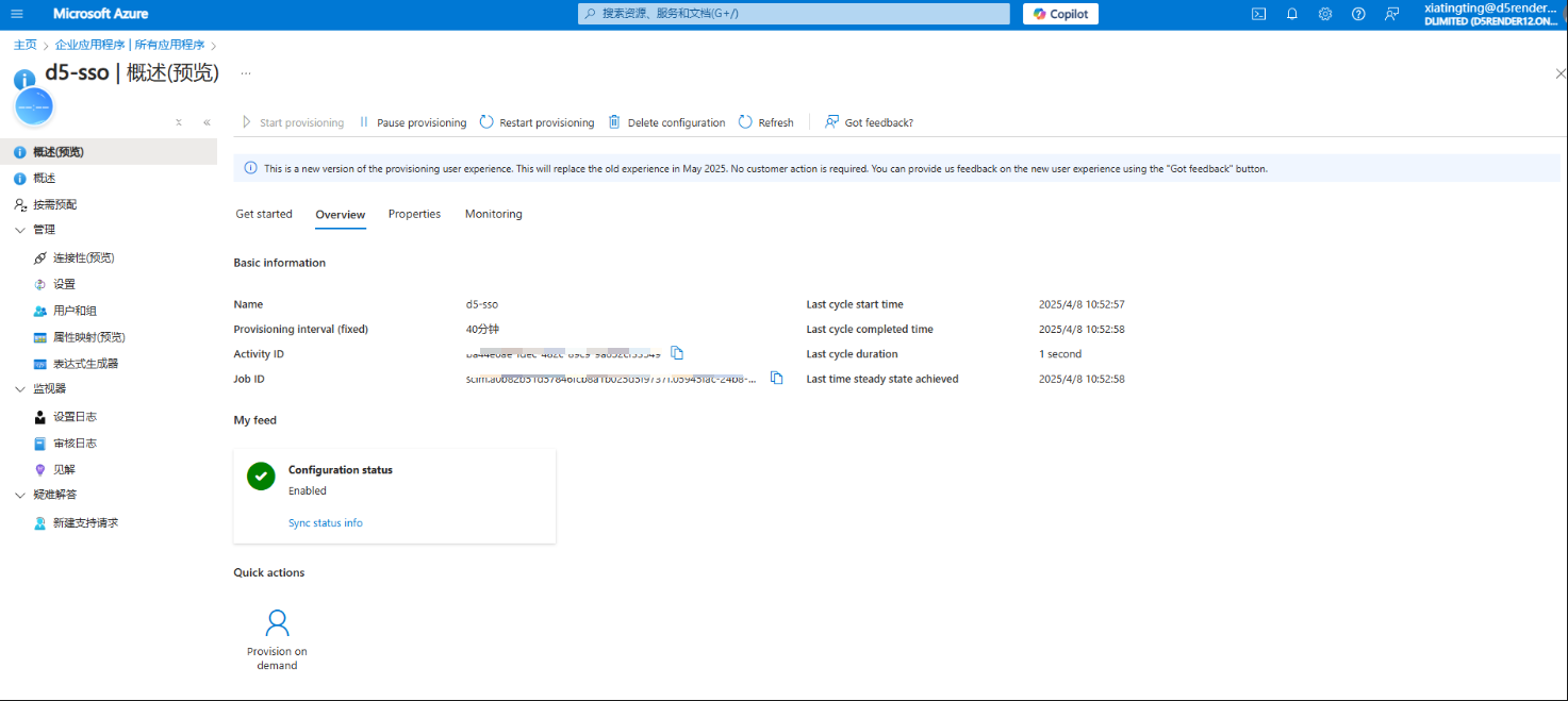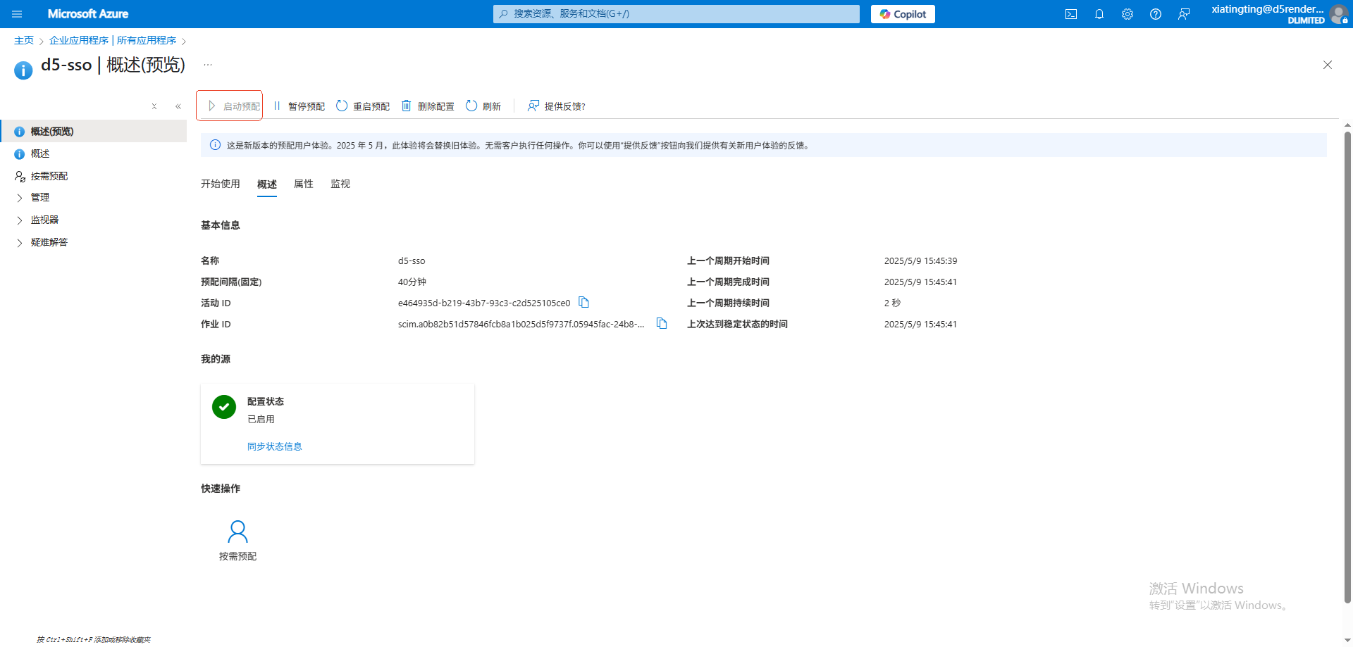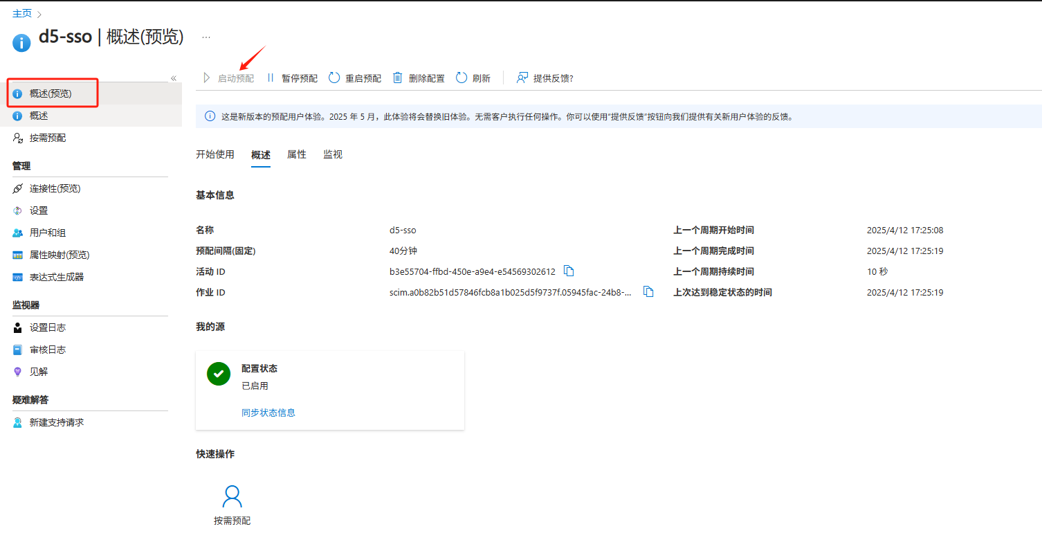 - 返回概述(预览)页,确认预配是否启动,没启动则点击启动预配