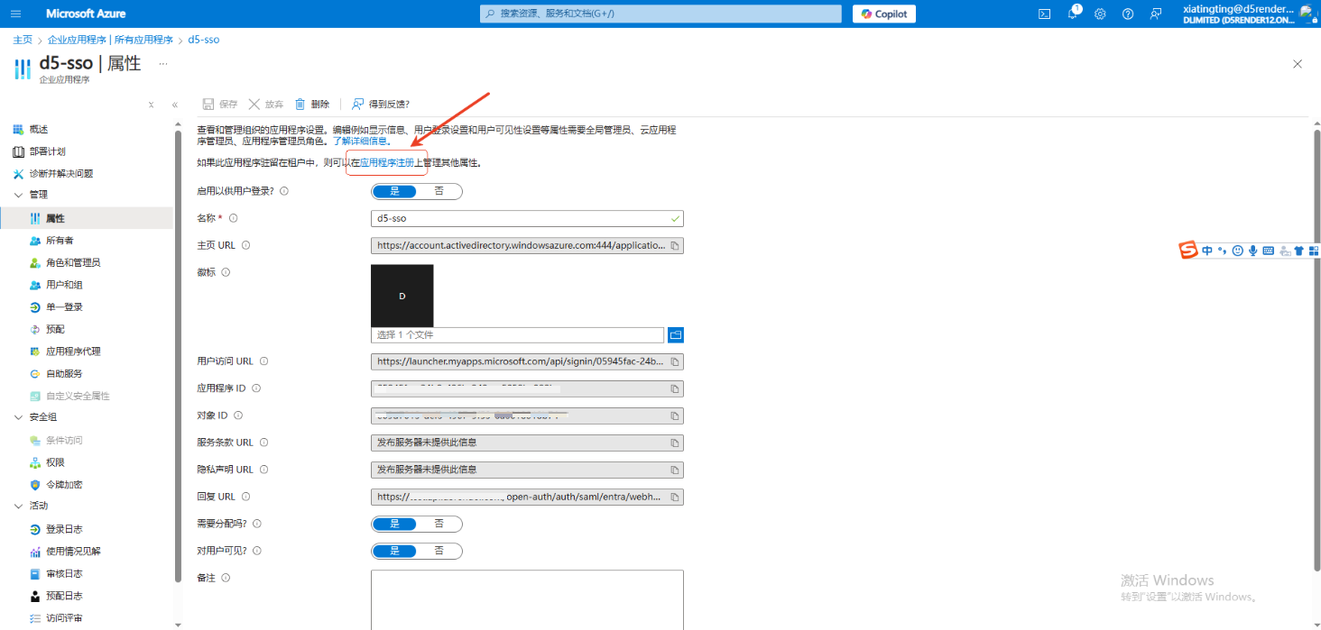 - 进入 企业应用程序 > SSO 控制模块 > 属性