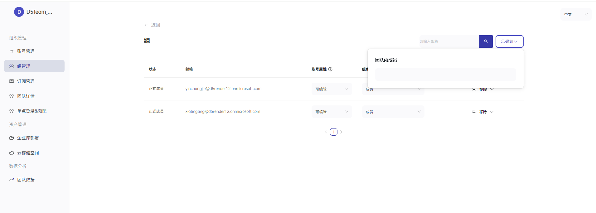 - 当启用 SCIM 后,D5 团队管理后台中的以下功能将被禁用: