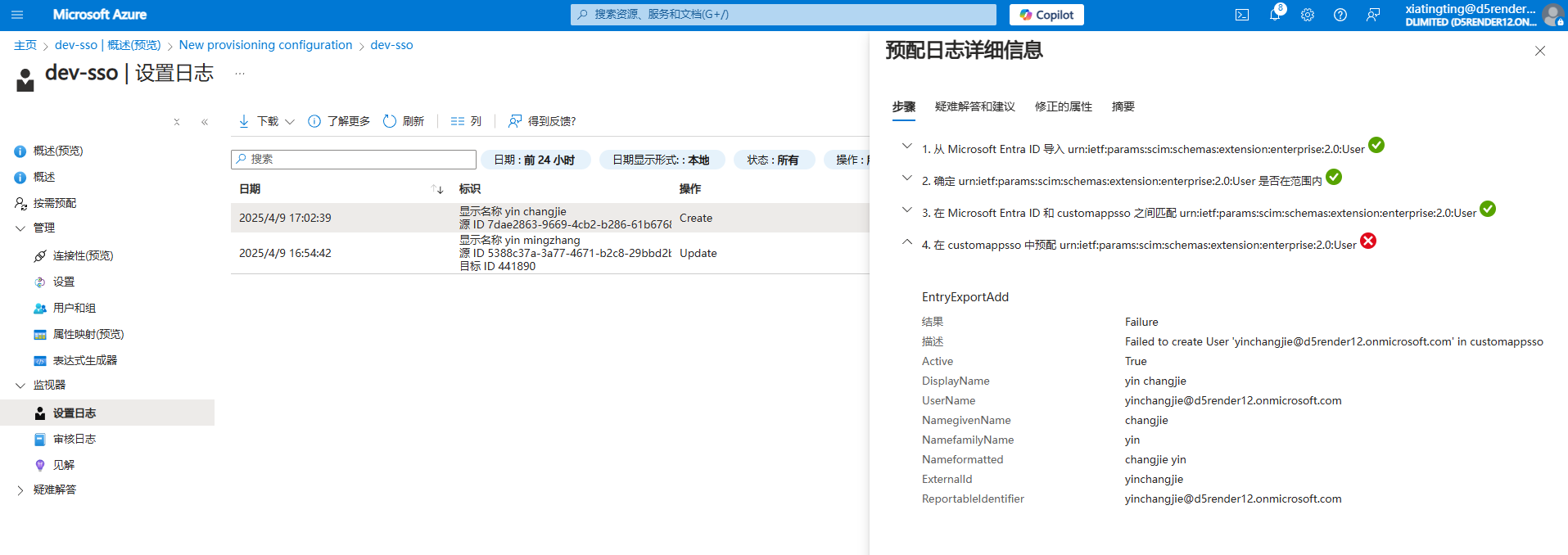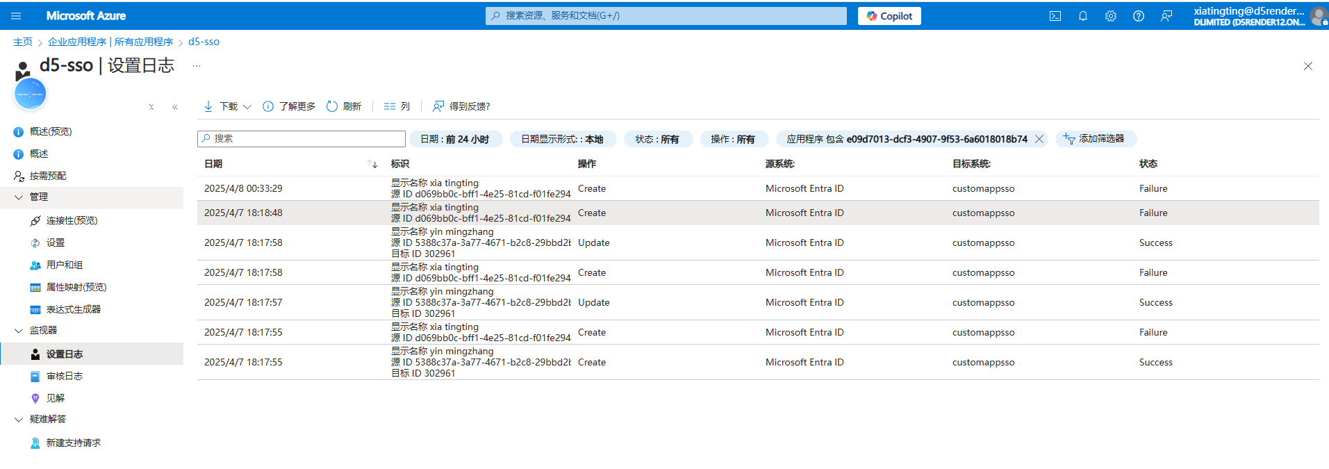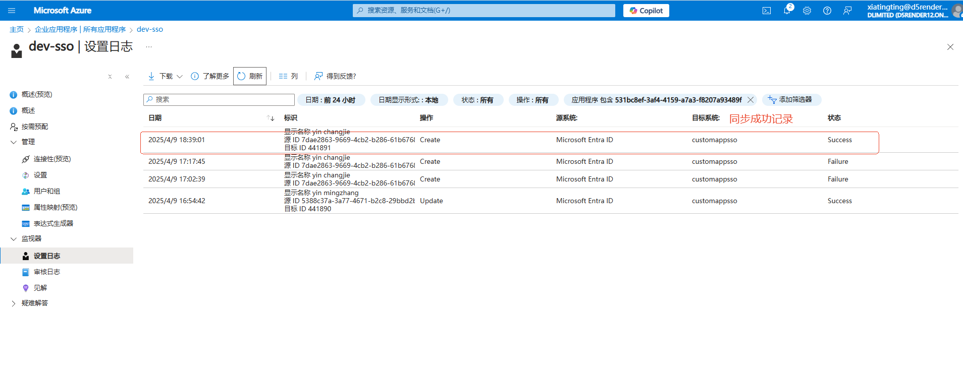- 在 Azure 后台中点击同步日志(Sync Logs)