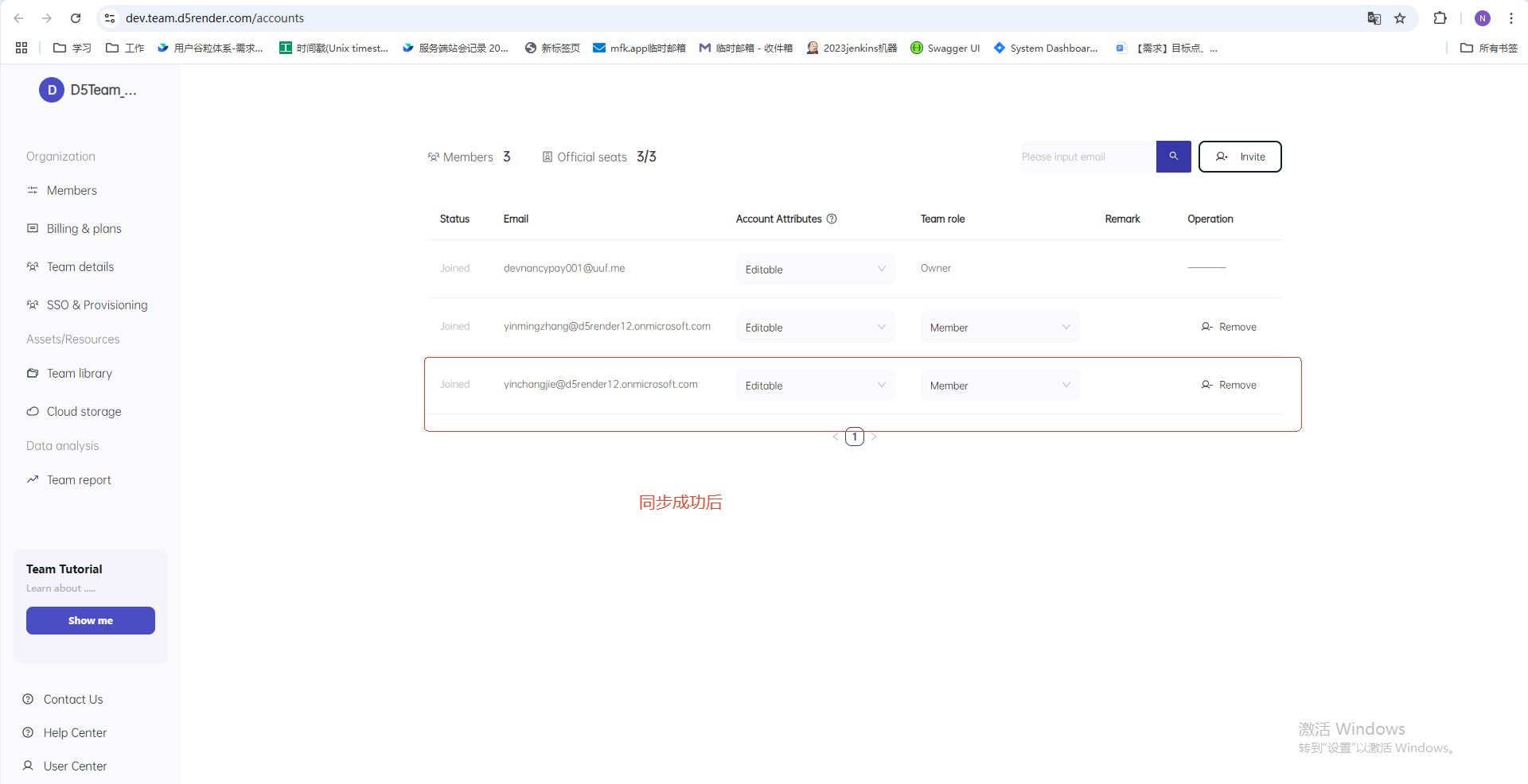 - 等待同步周期完成后,该用户将自动出现在团队中