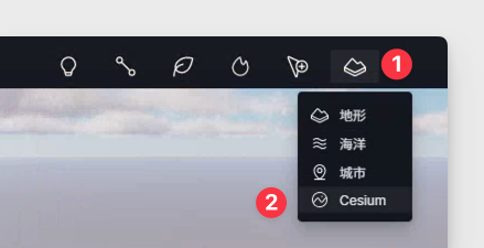 在 D5 渲染器客户端顶部打开 Cesium 操作面板