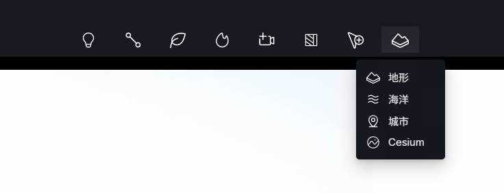 - 顶部工具栏【地形】下拉菜单 -> 选择【海洋】。