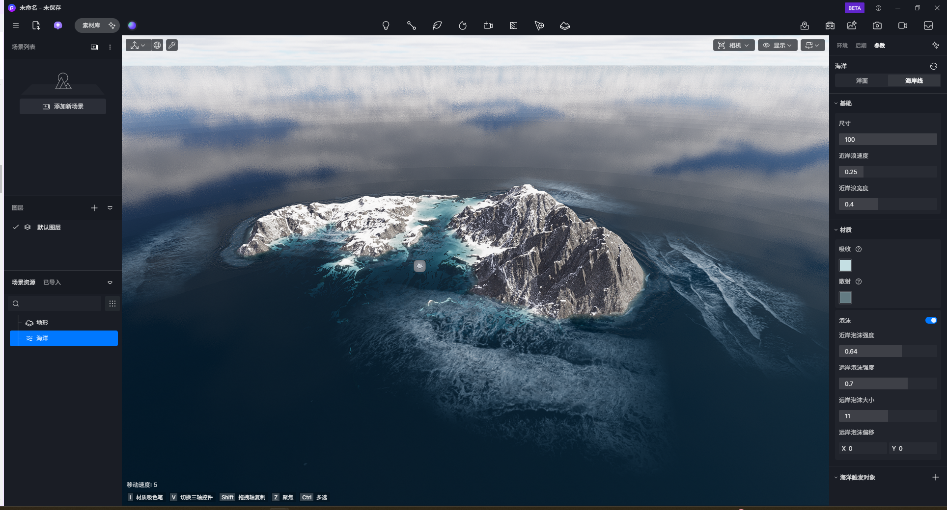 - 近岸浪速度:控制靠近岸边浪花的移动速度。