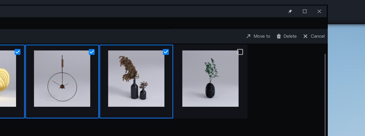 点击右上角“管理”功能,进入模型的批量管理功能。勾选模型后,点击移动到,在弹窗中选择目标分类移动即可。