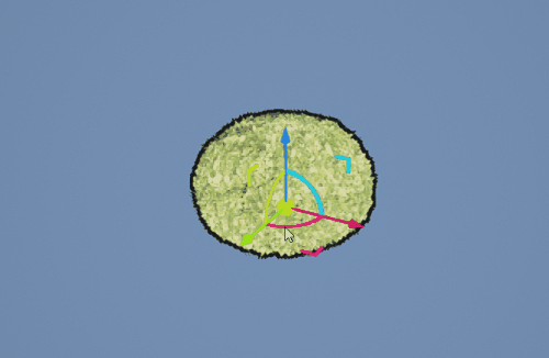 在场景中,用鼠标拖动坐标轴上的箭头位置,即可在 X / Y / Z 单一方向移动模型。拖动任意两个箭头之间的位置,可以使用平面移动坐标轴,方便在 XY / YZ / ZX 平面内移动模型: