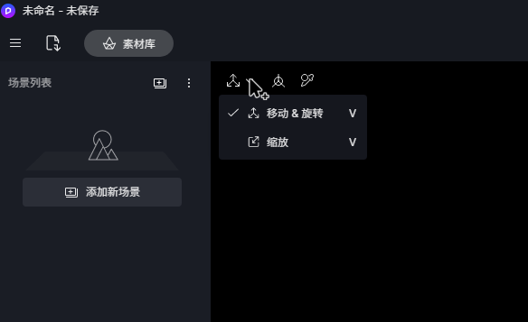 场景工具位于场景视口左上角,分为模型工具、坐标轴、材质工具三类。