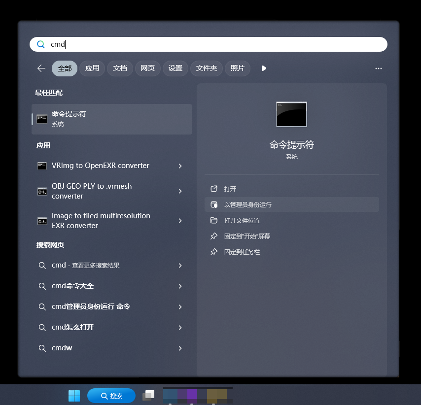 在 Windows 搜索栏中输入 CMD ,并选择“以管理员身份运行”,打开命令提示符。