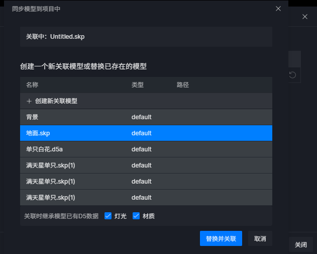 在弹窗中勾选需要替换的目标模型。(替换后将继承D5材质)